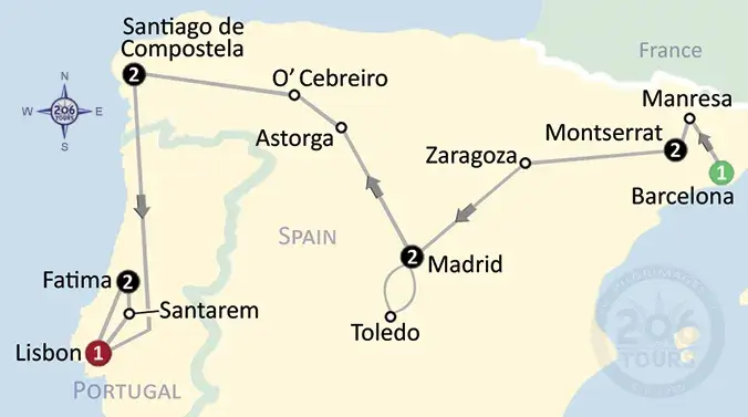 Following breakfast, your group will depart for Zaragoza. While in Zaragoza, you will have the opportunity to visit the magnificent Basilica del Pilar that was built upon the site of where Our Lady appeared to St. James. Next, visit La Seo Cathedral (Cathedral of Zaragoza). Continue to Madrid, where you will eat your dinner and enjoy a restful overnight.