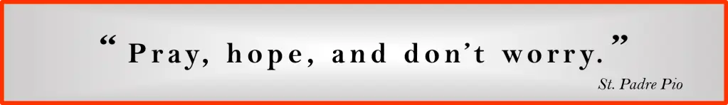 “[Pray, hope, and don’t worry] is a good summary of what we are called to in our lives. It is another way of saying what our Lord teaches: