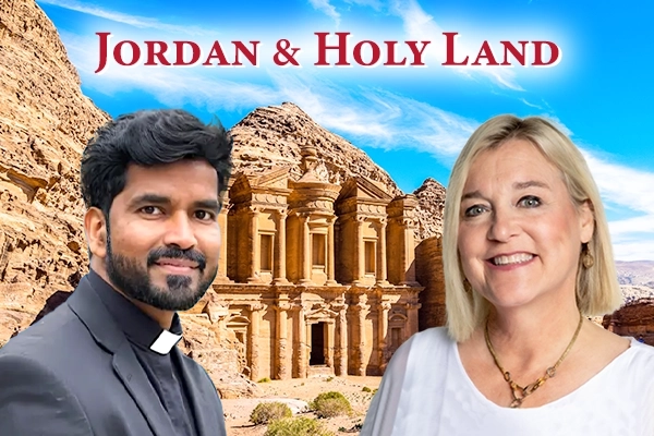 Amman * Petra * Kerak * Madaba * Mt. Nebo * Jerash * Tel Aviv * Caesarea * Nazareth * Cana * Tiberias * Sea of Galilee * Jordan River * Mt. Tabor * Jerusalem * Gethsemane * Ein Karem * Bethlehem * Qumran * Jericho * Dead Sea * Mt. of Olives * Mt. Zion * Holy Sepulchre