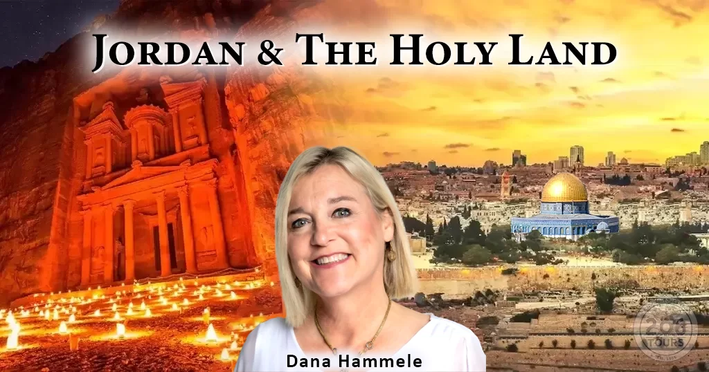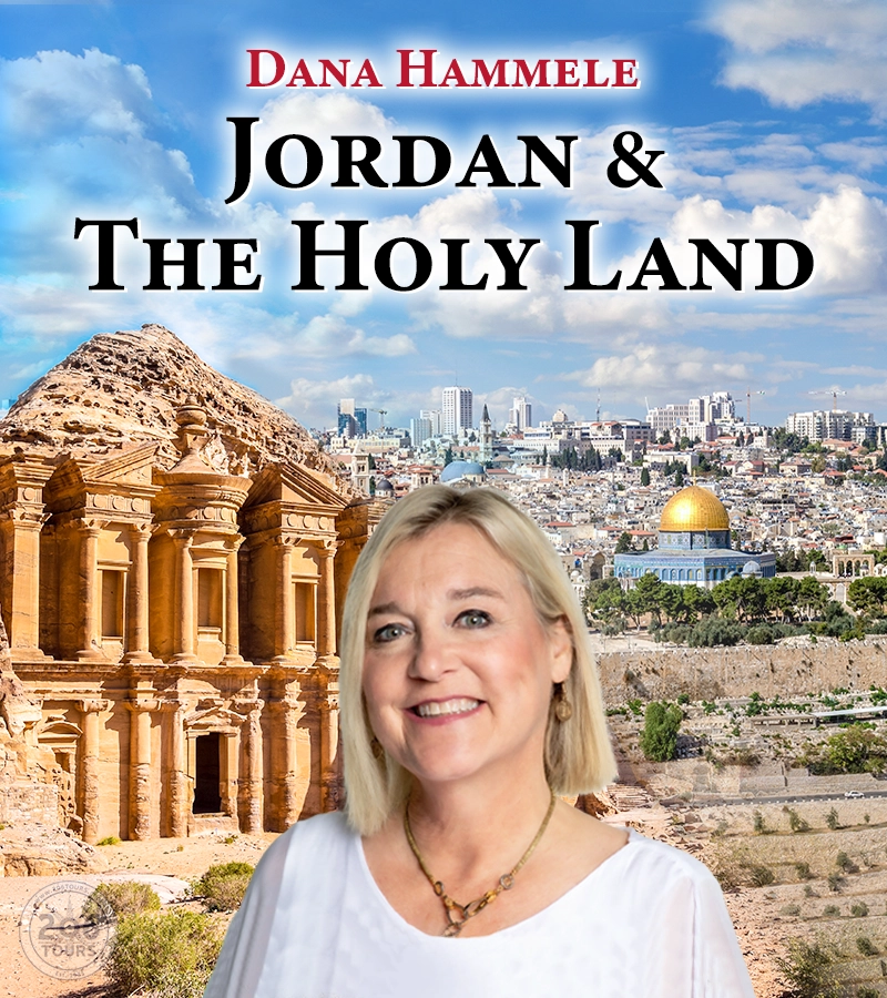 Amman · Petra · Kerak · Madaba · Mt. Nebo · Jerash · Tel Aviv · Caesarea · Nazareth · Cana · Tiberias · Sea of Galilee · Jordan River · Mt. Tabor · Jerusalem · Gethsemane · Ein Karem · Bethlehem · Qumran · Jericho · Dead Sea · Mt. of Olives · Mt. Zion · Holy Sepulchre