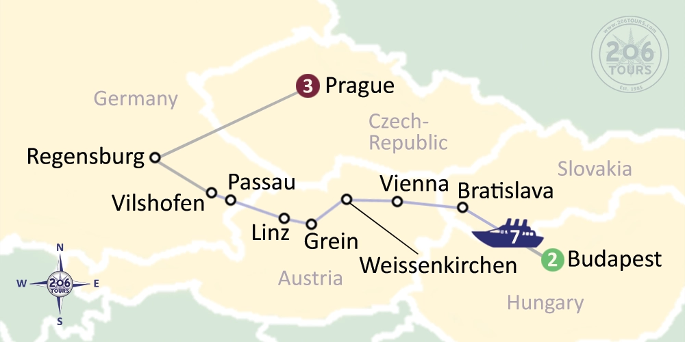 This morning following breakfast we disembark the ship and drive to Regensburg, one of Germany’s best preserved medieval cities, which you’ll discover on a guided walking tour. After touring Regensburg, continue on to Prague. Dinner and overnight in Prague.