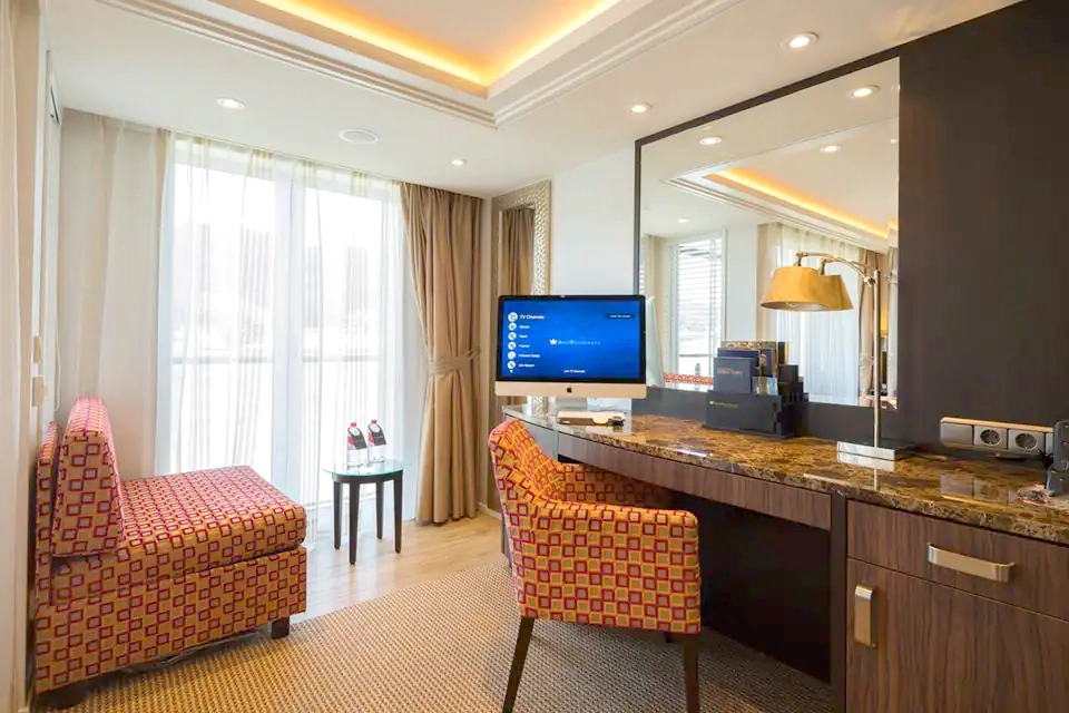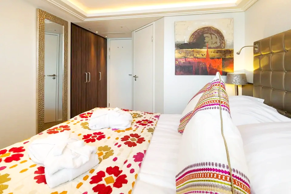 - Bottled water, fluffy bathrobes and slippers are provided free of charge in each cabin