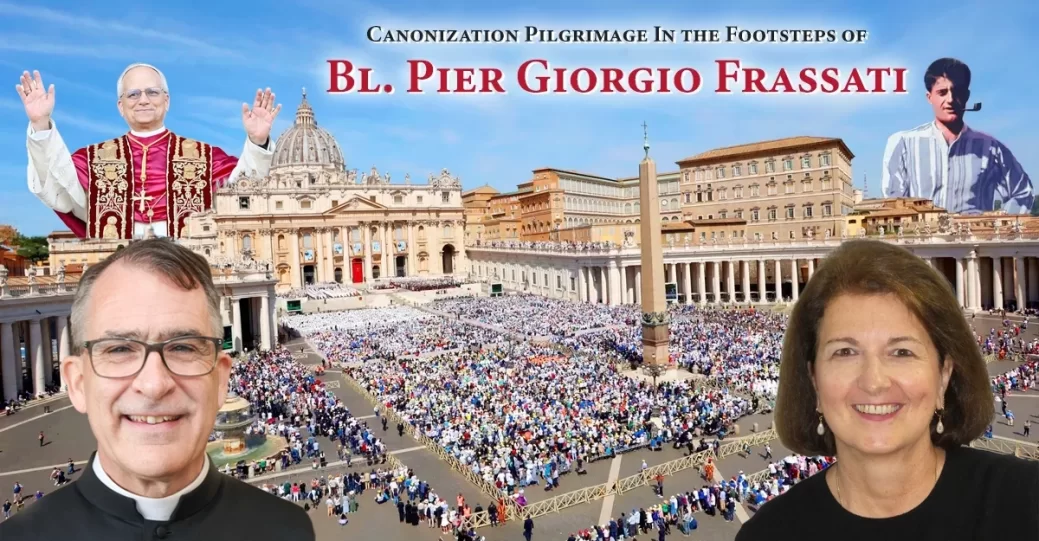 Following breakfast, you will be transferred to Tor Vergata to participate in the Papal Mass, scheduled to begin at 9:00 AM. You will join thousands of pilgrims from around the world in a powerful and unifying celebration of prayer and faith. After the Papal Mass and time for lunch, we will proceed to the historic Basilica of Santa Maria Sopra Minerva for a special private Mass and event honoring Blessed Pier Giorgio Frassati. This exclusive gathering, hosted for all 206 Tours pilgrims, will provide a meaningful opportunity to reflect on the life and legacy of this remarkable and inspiring young men – soon to be declared a saint. Dinner and overnight in Rome.