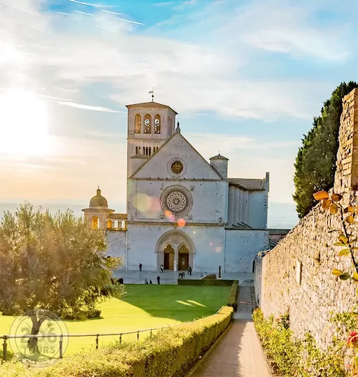 This morning your group will enjoy breakfast followed by a full day of touring the hometown of St. Francis! St. Francis is the patron saint of animals and the environment. He is also responsible for founding the Franciscan Order, and he is the inspiration for our Holy Father, The Pope. Our pope chose his name in admiration of the saint of nature and servant to the poor. Known for being a humble man himself, The Pope has long denied the luxuries of life. He prefers to live simply: giving up worldly possessions, just as St. Francis did. As your group visits the birthplace of St. Francis, you will be captivated by the unchanged 13th-century atmosphere in which St. Francis began his ministry. We will stroll into the magnificent basilica erected in his honor to gaze upon a series of frescoes depicting his life. Inside the church, we will have a chance to venerate a few of the saint’s possessions as well. Our visit to the Basilica of St. Francis will culminate in honoring his body. His tomb is on display in a small and silent crypt beneath the lower basilica. The ambiance of prayer and reverence is overwhelming in this sacred space. As our day continues, we will visit St. Mary of the Angels Basilica. This basilica is where St. Francis spent most of his life. Inside, we will visit both the Porziuncola and the Capella del Transito. The Porziuncola is where St. Francis founded his order of the Friar Minor (Franciscans), and the Capella del Transito is the place of St. Francis’ death. During this visit we will have the opportunity to visit where St. Francis and other friars lived, marked by a beautiful rose garden, as well as the cave where the saint retired to pray. After visiting this magnificent place, you will get to enjoy some free time on your own. Feel free to take this time for additional prayer, or to do some shopping. The last stop on our tour today will be to honor St. Clare, the foundress of the Poor Clare Sisters. This saint followed the teachings of St. Francis very closely by also living a life of poverty and humility. We will visit the church erected in her honor. Lastly, we will head back to the hotel, where you will have some additional free time to explore the area, shop, or pray. We will then gather back together for a farewell dinner at the hotel and our final overnight stay in Assisi.