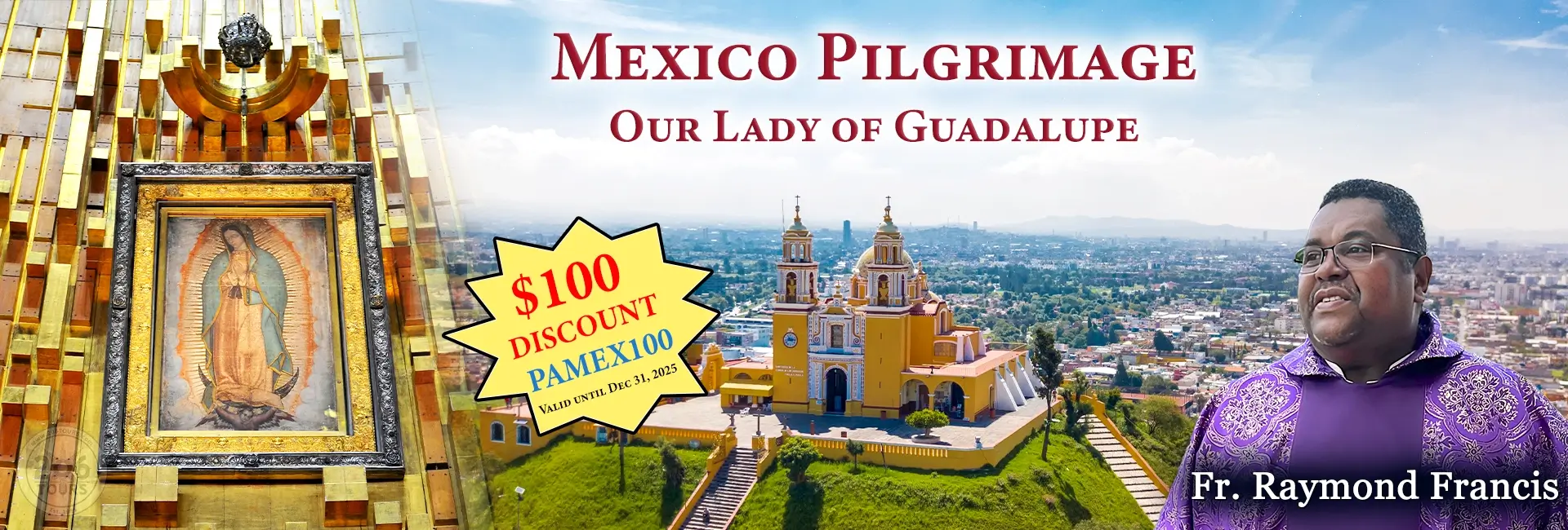 After breakfast, we will head to the Church of the Fifth Apparition, where the Blessed Virgin Maria de Guadalupe appeared to and healed Juan Bernardino, St. Juan Diego’s uncle. Healing him of the pox, for which there was no cure for the natives. Our Lady told St. Juan: “Listen, put it into your heart, my youngest and dearest son, that the thing tha frightens you, the thing that afflicts you, is nothing: do not let it disturb you…Am I not here, I who am your Mother? Are you not under my shadow and protection? Am I not the source of your joy? Are you not in the hollow of my mantle, in the crossing of my arms? Do you need something more? Let nothing else worry you or disturb you.” Here you can find a well of healing water that locals drink from. You can pause at the well and reflect on the consoling words of our Mother Mary. We will celebrate Mass before we return to the Shrine of Our Lady of Guadalupe for one last prayer before the miraculous image of the Mother of God. You will have time for leisure and fun during our farewell last dinner out completed with live Mariachi music.