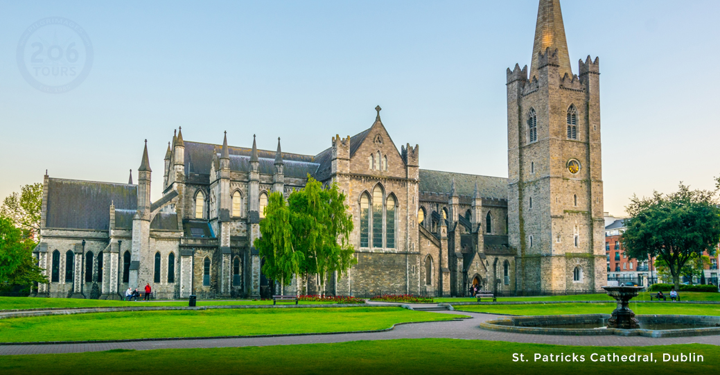 Cead Mile Failte – Welcome to Ireland! Upon arrival into Dublin you will be greeted by your tour guide and driver. We will have a panoramic city tour on both sides of the River Liffey, where we pass by the General Post Office on the city’s main streets, O’Connell Street, Custom House, and Phoenix Park, the largest city park in Europe. On the other side of the river are Georgian squares characterized by colorful doors, Grafton Street and Trinity College which is the oldest university in Ireland, founded in 1592 by Elizabeth I. Time permitting we visit the ancient library containing over 20,000 manuscripts, among which is the Book of Kells, a manuscript from the 9th-century written by the monks at St. Colombo’s monastery on the island of Iona. Today we will also visit St. Patrick’s Anglican Cathedral, built in 1213. This Gothic Cathedral has a splendid interior, with some beautiful tombs and monuments. The ornate stained glass windows can be found in the Chancel. In the late afternoon we transfer to our hotel for dinner and overnight.