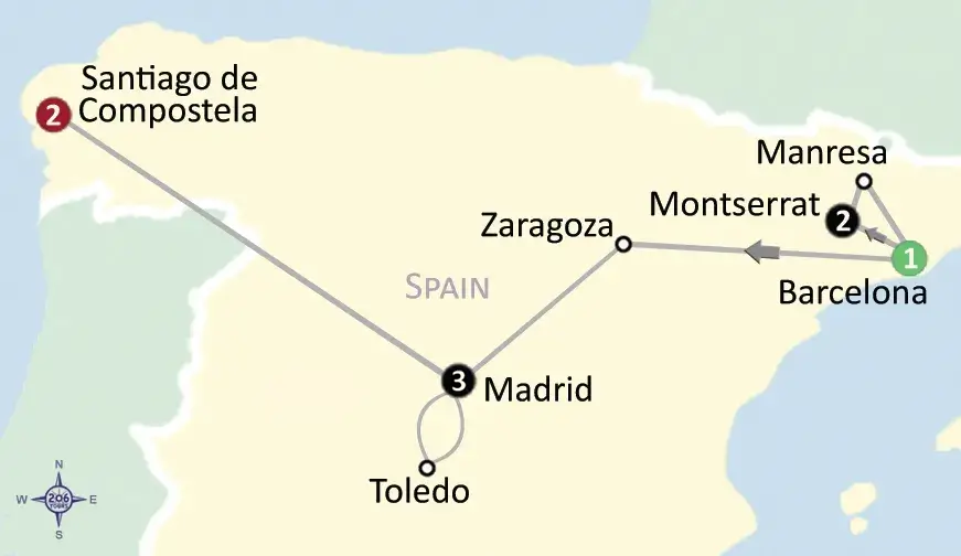 Rome * St. Peter’s Basilica * Vatican Museum * Appian Way * St. Paul Outside the Walls * San Sebastiano Fuori le Mura * Orvieto * Assisi * Florence * Turin * Siena* Lourdes * Turi * Cathedral of St. John the Baptist * Sanctuary of Maria Ausiliatrice * Corpus Domini *