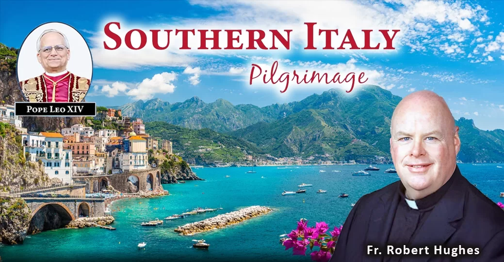 After breakfast, board your motor coach to Pompeii, the famous ancient city buried by the ashes of Mt. Vesuvius in 79 AD. You will walk through one of the most important and interesting archeological museums in the world. This is a preserved site full of the excavated ruins of streets and homes that pilgrims can freely explore. Visit the Shrine of the Rosary of Pompei “La Madonna Del Rosario”, one of the most visited Catholic Shrines. The painting of “Our Lady of the Rosary” with its bronze gilt frame is presented to the pilgrims on the high altar. The venerated painting depicts the Virgin Mary and Child Jesus presenting the Rosary to Saint Dominic and Saint Catherine of Siena. Inside the shrine there are also two very important relics belonging to the Passion of Christ; a thorn from the Crown of Thorns and a small piece of the Holy Cross. Enjoy some time to relax before dinner and overnight.