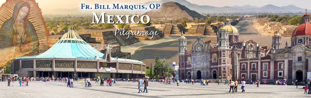 Today you will go to the Shrine of Our Lady of Guadalupe, the Patroness of the Americas. This Shrine was built in response to Our Lady’s request to the apparition’s seer, St. Juan Diego Cuauhtlatoatzin. When St. Juan relayed her request to the bishop, he asked for a sign. Our Lady provided St. Juan with culturally significant flowers that miraculously bloomed in the middle of winter on Tepeyac Hill. When the seer returned to the bishop with his cloak (tilma) full of flowers, he poured the flowers on the floor, revealing a stunning image of Our Lady which many studies have proven could not have been made by human hand. Upon arrival at the Shrine of Our Lady of Guadalupe, you will celebrate Mass as you marvel at the brilliantly colored basilica made in her honor. Following Mass, you will have the opportunity to kneel in front of St. Juan’s tilma, on which Our Lady’s image was miraculously imprinted. We will continue to San Juan Teotihuacan, a UNESCO World Heritage Site. According to mythology, this site was chosen to be the center of the universe and thus became a prominent political and religious center from the second century to the ninth century. While in San Juan Teotihuacan, you will enjoy lunch at a nearby restaurant, followed by a guided tour of the archaeological zone. While on this tour, you will view the pyramids of the Sun and Moon, the Temple of Quetzalcoatl, and local art markets. Your incredible day will culminate with a delicious dinner and returning to the hotel.