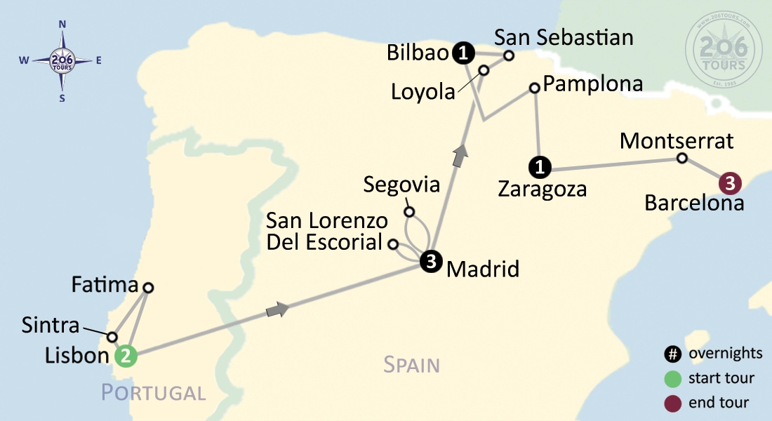 Following breakfast we will depart for Pamplona, the capital of Navarre, known world-over for its annual “running of the bulls.” More importantly than this famous sport, however, is an event that took place here in 1521 that would have reverberations around the entire world. It was here that Ignatius’ leg was shattered by a cannonball. If that had not happened, Ignatius may never have experienced such a great conversion of heart, and the Jesuits would not have been formed. The rest is history. In Pamplona we will enjoy a walking tour of the old quarter and the Citadel of Pamplona, followed by free time for lunch. In the afternoon we will depart Pamplona for Zaragoza, the capital of Aragon and one of the most important cities in Spain. It is here, tradition tells us, that Mary once appeared to Saint James the Apostle, who, following the Ascension of Our Lord, set out to preach the Gospel to the people of Spain. “As he was praying with his disciples one night . . . the Mother of God, who still lived, appeared to him, and commanded him to erect an oratory in that place. . . his disciples soon constructed a small chapel. In the course of time a larger church was built and dedicated. . .” In Zaragoza we have the first recorded Marian Apparition – for it took place while she was still alive – and the oldest place of Marian devotion in the world. Here we will tour the old quarter and the Basilica of Our Lady of the Pillar, followed by Holy Mass. We will then enjoy dinner and overnight. Holy Mass: Basilica of Our Lady of El Pilar in Zaragoza Meals Included: Breakfast and Lunch Overnight: Zaragoza.