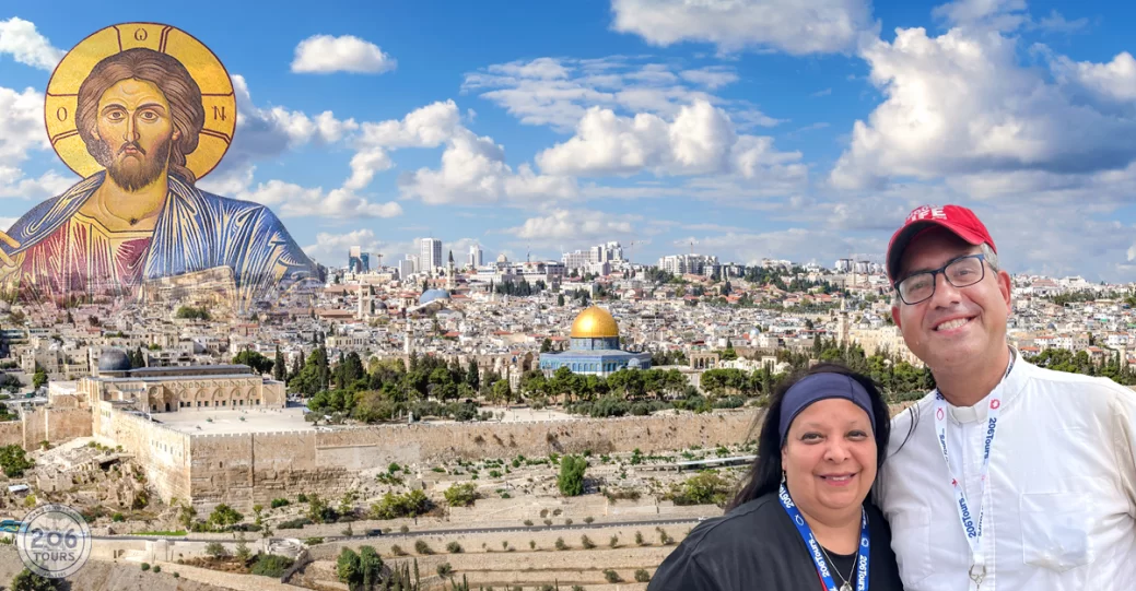 This morning, we ascend Mt Tabor (Matthew 17:1-50). At this site, Christ’s Divinity was revealed. Celebrate Mass at the Basilica of the Transfiguration. From the top of Mt Tabor, enjoy a dramatic view the Valley of Armageddon, before driving to Caesarea Maritima located on the shores of the Mediterranean. Built by Herod the Great, Caesarea was where St. Peter baptized the first gentile convert, Cornelius (Acts 10). We will see the Roman theatre Herod’s Palace, view the Hippodrome, and the harbor from which St. Paul sailed on his journeys to spread the Gospel of Jesus Christ throughout the ancient world. Continue the drive up to the Judean Hills where you enjoy your first view of holy, complicated, Jerusalem from Mt Scopus.
