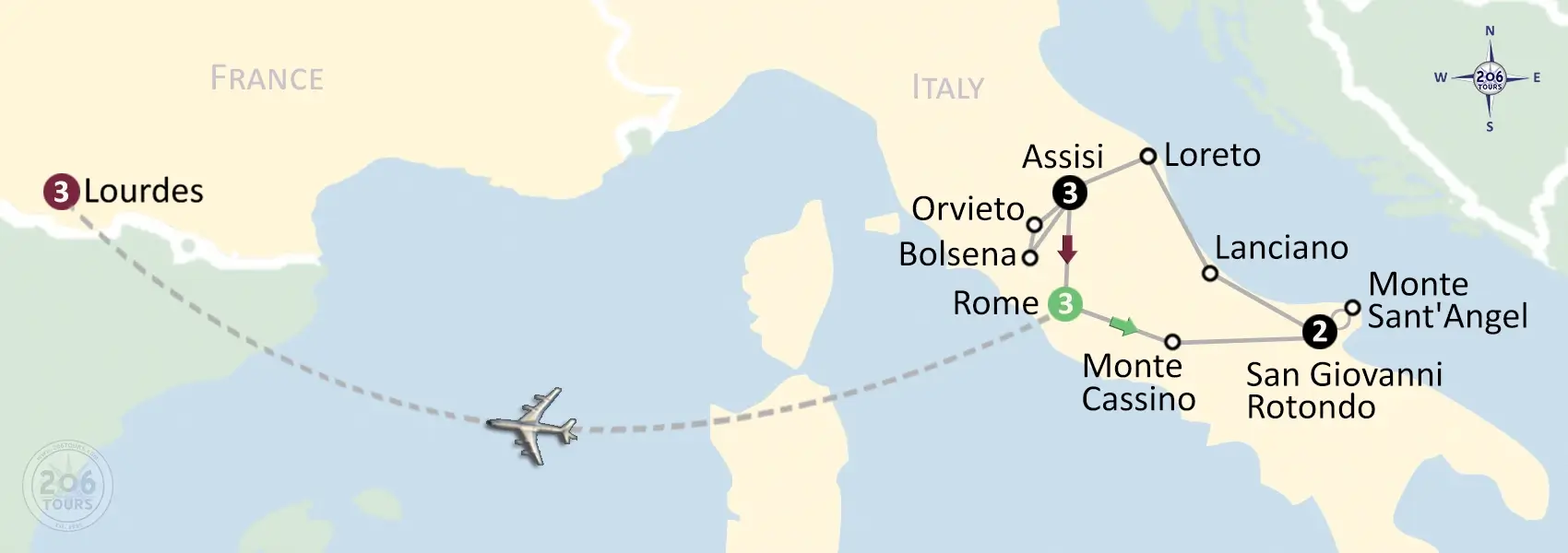 Day 10 | Wednesday, October 15: Assisi – Rome Airport – Lourdes