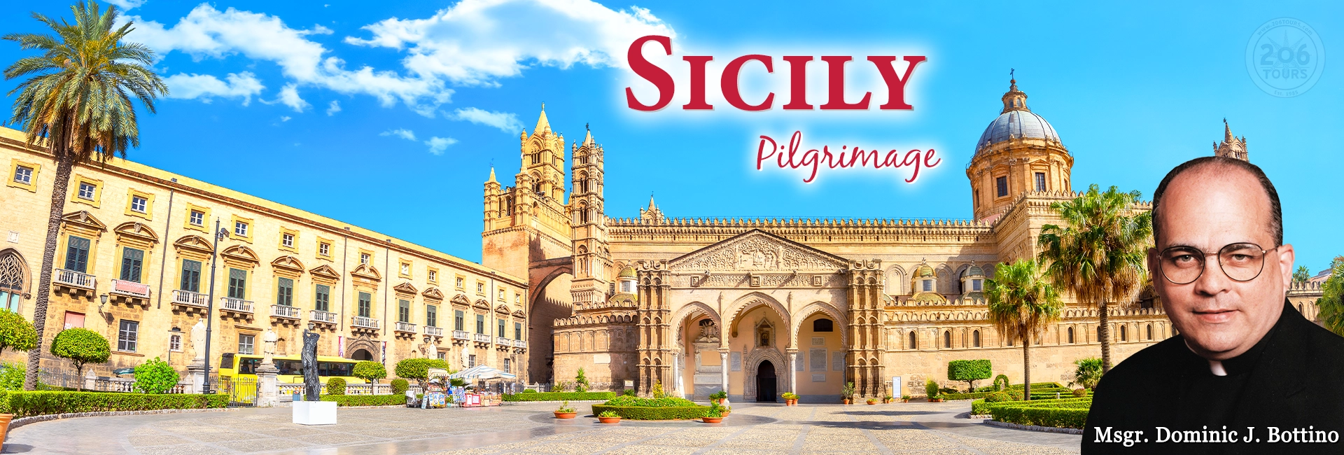 After breakfast, we will visit the Santuario of Santa Rosalia where the relics of the saint are kept. Born into a wealthy family, Rosalia felt a strong calling to a life of solitude and prayer. She fled to the mountains near Palermo, where she lived as a hermit and performed miracles. Rosalia’s holiness spread throughout Sicily, and people from all walks of life sought her intercession. Afterwards we’ll tour through Palermo’s colorful and bustling Ballaro street market – all spiced with an evocative whiff of Africa. See the top attractions in the old town of the Sicilian capital of Palermo, including the Teatro Massimo (exterior), Cathedral, and Politeama Theater (exterior). Your visit will include the Palatine Chapel as well. Dinner and overnight in Palermo.