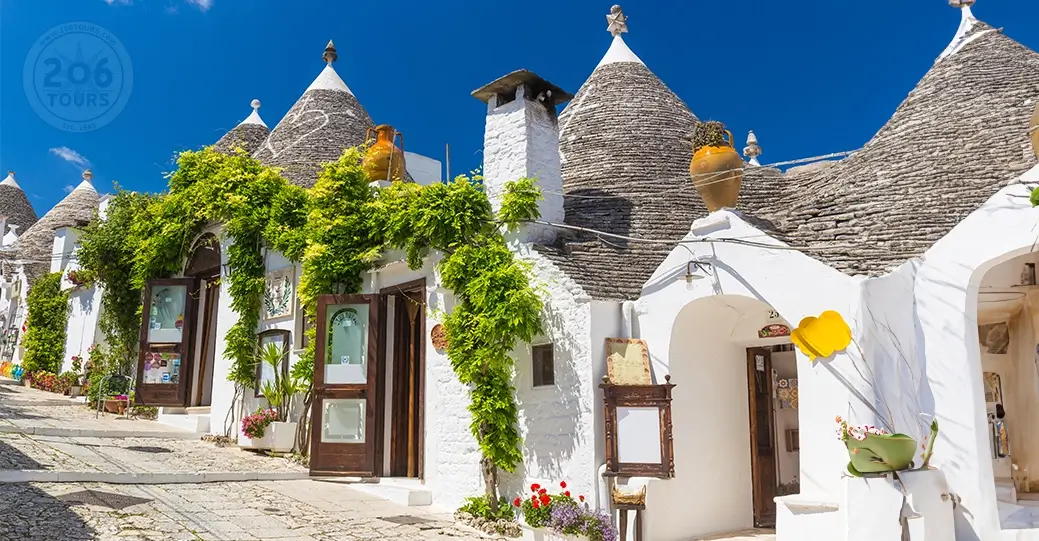 Depart Matera and embark on a day of discovery in Puglia. Our first stop is Alberobello, a UNESCO World Heritage site, where you will wander through the fairytale streets lined with iconic, conical-roofed Trulli houses. Next, descend into the earth at Castellana Grotte to explore its spectacular, massive underground cave system, an unforgettable natural wonder. In the late afternoon, we continue to the Adriatic coast and the Monopoli area. Check into your accommodation to settle in and prepare for your stay by the sea.