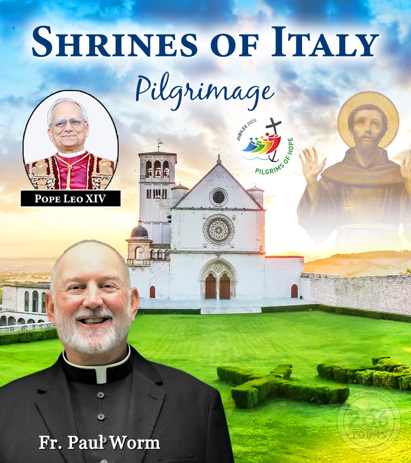 Tour of the Basilica of St. Francis, where you will see the tomb of St. Francis, and have the opportunity to view a series of frescoes depicting his life, along with a few of the saint’s possessions. Next you will visit the Santuario Della Spogliazione where Blessed Carlo Acutis’ tomb is, the first millennial to be declared Blessed. Continue tour by walking through this picturesque town, where St. Francis and St. Clare both followed God’s call to rebuild his church. Enjoy some free time – for additional prayer, shop and lunch. After lunch, board the bus, which will take you outside of the walls of Assisi, to the Basilica of St. Mary of the Angels. This Basilica is made up of two structures, both of which you will visit. The first structure is the “Porziuncola” and the second is the “Capella del Transito” which is the place where St. Francis died. Return to the hotel for dinner and a restful overnight.