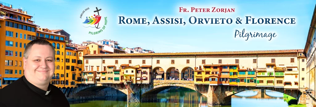 As you visit the birthplace of St. Francis, you will become captivated as the atmosphere has not changed since St. Francis began his ministry, in the early 13th-century. You will start your tour at the St. Francis Basilica, visit his tomb of St. Francis, and have the opportunity to view a series of frescoes depicting his life, along with a few of the saint’s possessions. Followed by a visit to the Santuario Della Spogliazione where Blessed Carlo Acutis’ tomb is placed. Carlo is the first millennial to be declared Blessed who loved the Real Presence of Jesus in the Eucharist. From there, you will continue on a walking tour through this picturesque town, including the birthplace of St. Francis, and end with a tour of the Church that honors St. Clare, the foundress of the Poor Clare Sisters. This Saint followed the teachings of St. Francis very closely by also living a life of poverty and humility. Enjoy some free time on your own – you may take this time for additional prayer, shop in the many gift shops or enjoy a nice lunch. After lunch, you will board the bus, which will take you outside of the walls of Assisi, to the Basilica of St. Mary of the Angels. This is where St. Francis spent most of life. This Basilica is made up of two structures, both of which you will visit. The first structure, is the “Porziuncola”, which is where St. Francis founded his order of the Friar Minor (Franciscans). The second, is the “Capella del Transito”, which is the place of St. Francis’ death. During your time here, you will have the opportunity to visit the beautiful Rose Garden where St. Francis and other friars lived, as well as the cave where the Saint retired to pray. Return to the hotel for dinner and an overnight.