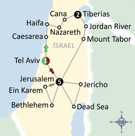 Upon arrival at Ben Gurion Airport in Tel Aviv, make your way to the baggage claim area and collect your luggage. Proceed to the Arrival’s Hall, where you will be greeted by a rep holding a “206 Tours – GEM” sign. Transfer to your hotel in Tel Aviv to check-in. Enjoy dinner at the hotel before retiring for the evening.
