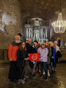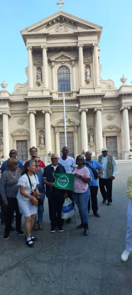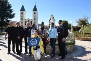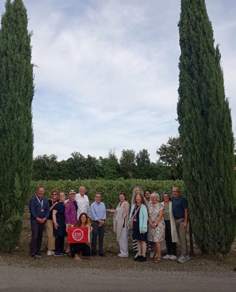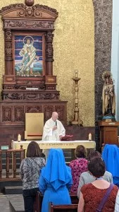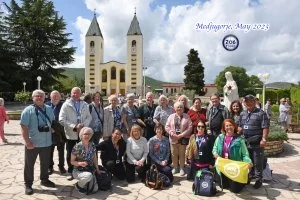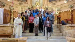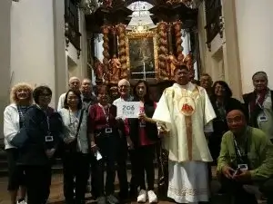 Pilgrimage: The 206 Tours group with a priest after Mass