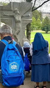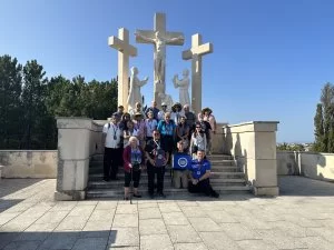 - Pilgrimage: Aleksandra Kowalczyk's group near the monument to Pope John Paul II