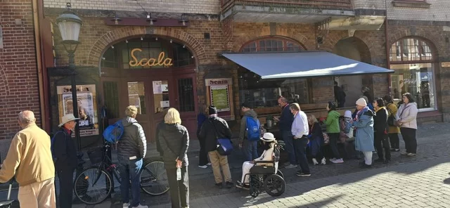- Pilgrimage: People enjoy a sunny street in Ystad