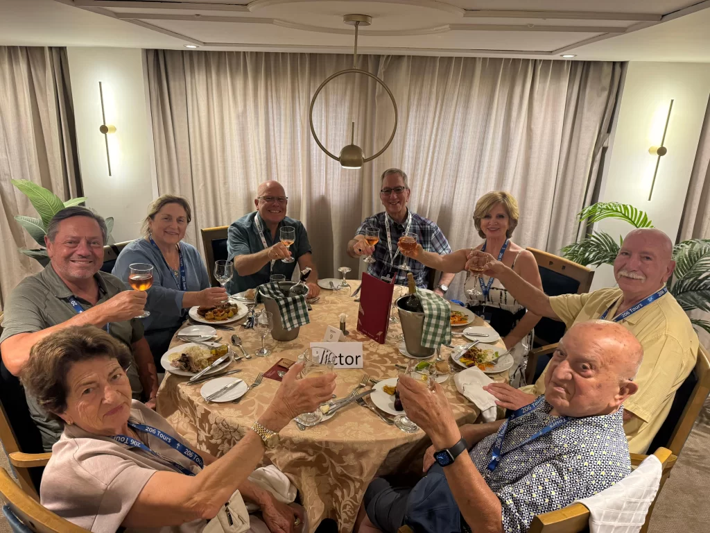 Pilgrimage: Trudeau group toasting together during a dinner in Luxor