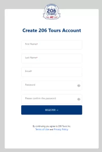 New Clients: “Create A New Account” (if you have never made a reservation with 206 Tours)