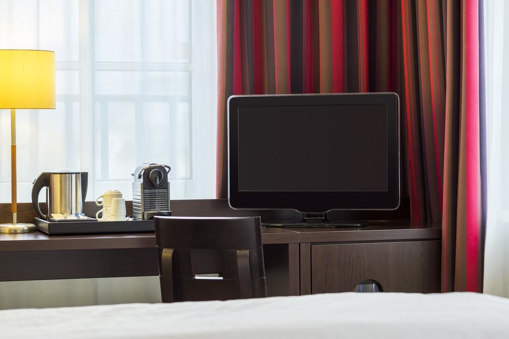 The hotel has 140 rooms spread over 5 floors. Rooms are decorated in warm reds and have hardwood floors. Features like Wi-Fi and satellite TVs come as standard, and rooms have desks for working. A free late checkout on Sunday is available, on request.