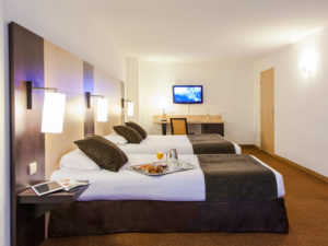 Our rooms are decorated in a contemporary style, the 204 rooms are spacious and they have a king-size bed, a flat TV and a free Wi-Fi connection for our clients. You will also find a mini bar in some of the rooms!