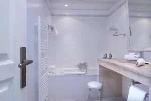 Around 377 ft² / 35 m², the suites can accommodate up to four guests. Decorated in an elegant manner, they come with a bedroom and a small separate lounge. They are furnished with a double bed and a sofa bed.