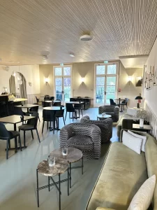 Enjoy the warm and stylish ambience of the bar at Le Prieuré du Coeur de Jésus. Sit back in a comfortable armchair or soft sofa and choose from a wide selection of wines and spirits.