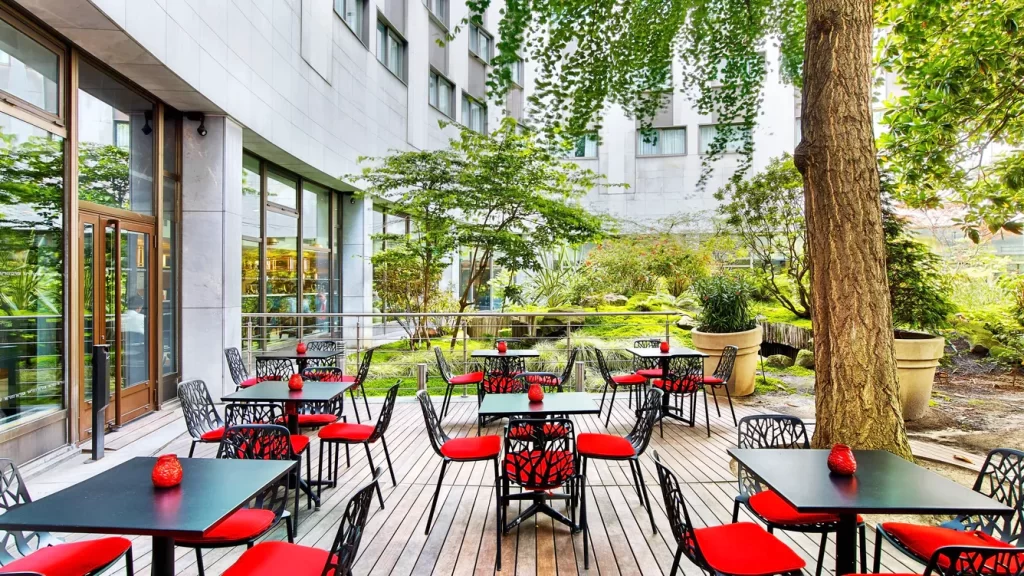While staying at the Le Meridien Etoile, you can discover a variety of hotel eateries at our restaurant. Before exploring the 17th arrondissement or visiting the Palais des Congrès, indulge at the LM Café bar with an Illy coffee, a signature savoury or sweet pastry, a quick lunch, on site or take away. Inspiring experiences extend to the legendary Jazz Club Etoile, renowned for its live music scene since 1975, where guests can enjoy performances alongside a cleverly mastered Chef’s menu and Cocktail list. This unique venue can be privatized for up to 150 guests. Le Patio Etoile, the hotel’s terrace can also be privatized for up to 130 guests.