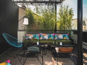 Enjoy a stunning view of the Eiffel Tower and Paris rooftops from the 7th floor of the hotel! From May to September, come and enjoy the Lounge Bar View Rooftop, bathed in soft summer evening rays, with friends, family or a special someone.
