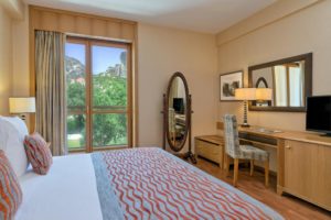 The junior suite has a separate seating room and a balcony with a spectacular view of Meteora rocks.