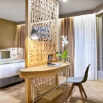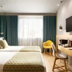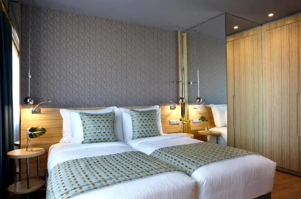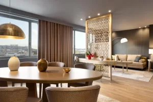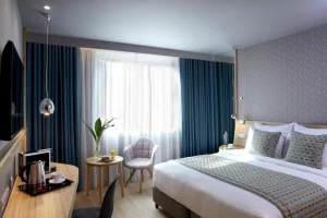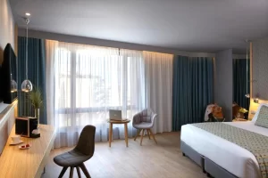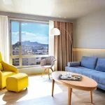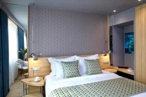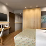 The Accessible Standard Double, Twin or Junior Suite Guestroom is thoughtfully designed to provide both accessibility and comfort, offering a serene city view and a relaxing atmosphere.