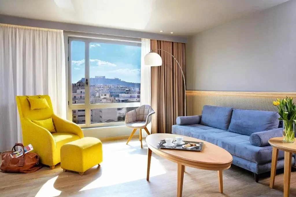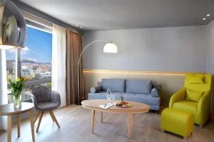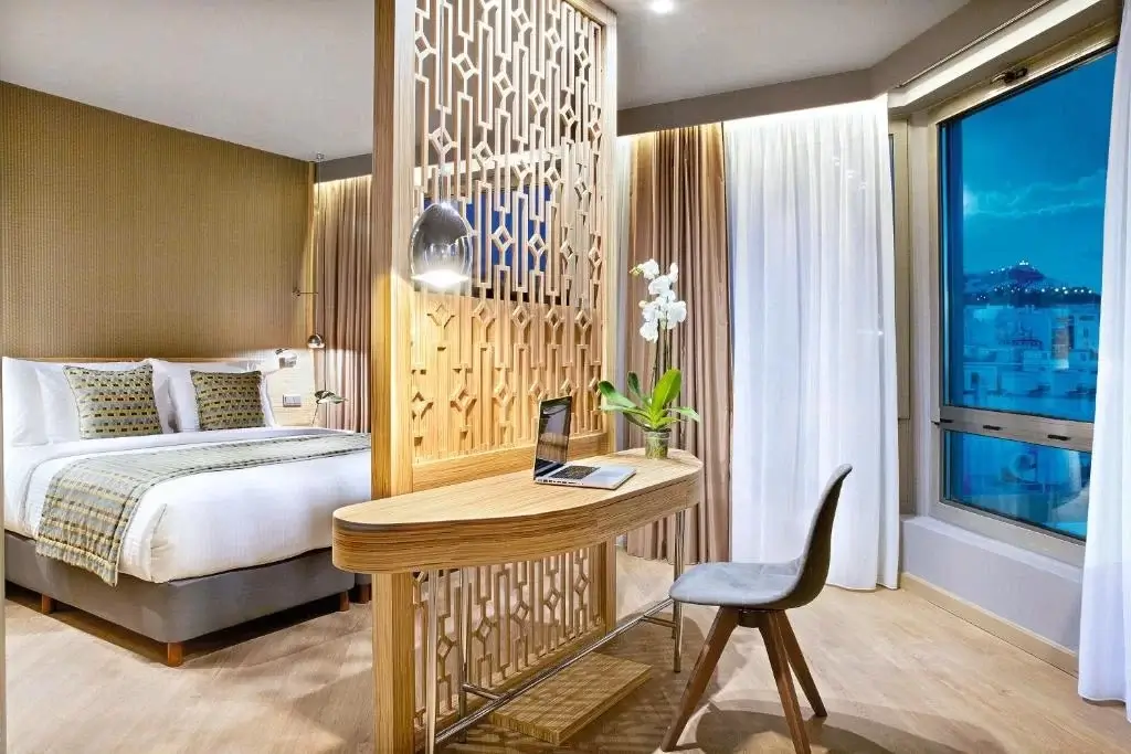 Grace and elegance go hand-in-hand in our Junior Suite with breathtaking Acropolis view. Designed and furnished for maximum comfort, this Junior Suite offers kind-sized bed with pillowtop mattresses, Egyptian cotton linen sheets for a relaxing sleep.
