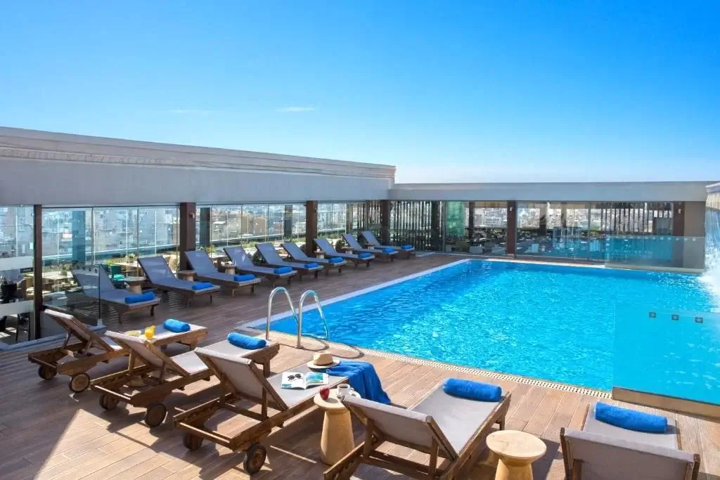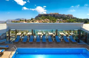 Guests can taste a rich breakfast and lunch or dinner with Mediterranean and international gourmet dishes accompanied by signature cocktails at the open-air rooftop restaurant, with Acropolis view. Special diet menus can be prepared upon request, while in-room dining is also available.
