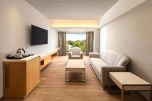 The spacious suite features 1 bedroom and 1 bathroom with a walk-in shower and free toiletries. The air-conditioned suite provides a flat-screen TV with cable channels, a mini-bar, a tea and coffee maker, a wardrobe as well as pool views.