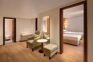 The spacious suite features 1 bedroom and 1 bathroom with a walk-in shower and free toiletries. The air-conditioned suite offers a flat-screen TV with cable channels, a mini-bar, a tea and coffee maker, a wardrobe as well as city views.