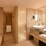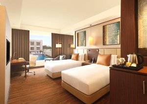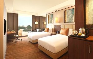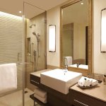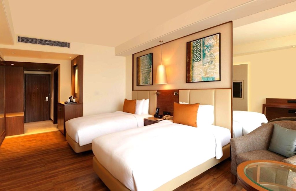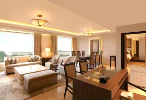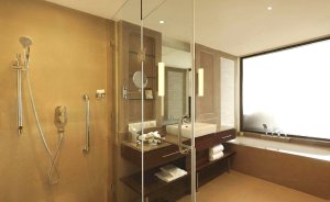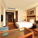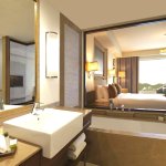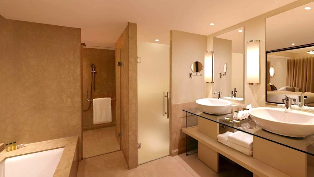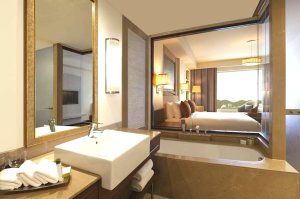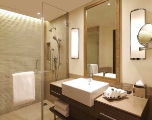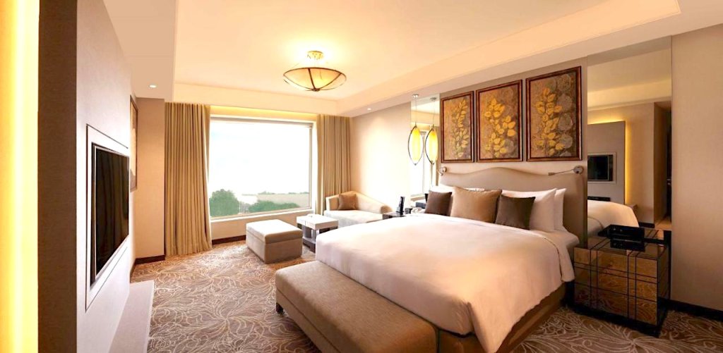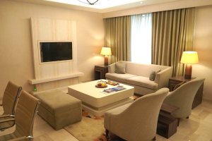 Rooms include a 42-inch HDTV, mini-bar, WiFi and large writing desk with ergonomic chair. The guest and deluxe rooms come with three-fixture and four-fixture bathrooms respectively. The one-bedroom suites come with a living area, dining room, powder room and four-fixture bathroom. The Presidential Suite comes with additional features such as panoramic views of the city, walk-in closet and pantry.