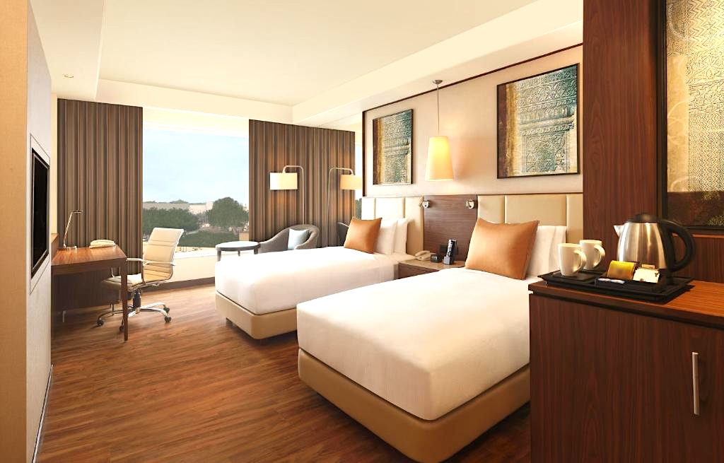 Find us 10 minutes from the Taj Mahal. Agra Fort, Itmad-ud-Daula, and Pandit Deen Dayal Upadhyaya Airport are all within 6.8 mi / 11 km. We offer an infinity pool, a 24-hour fitness center, and a concierge. Enjoy a treatment in our spa, all-day dining in our restaurants, and a DoubleTree Chocolate Chip Cookie when you arrive.