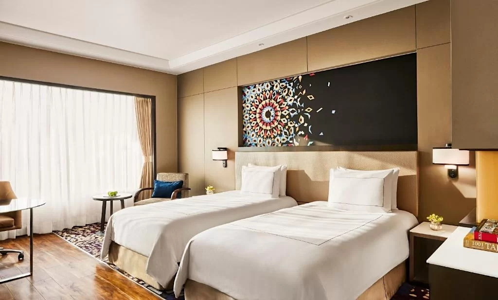 Indulge in the opulence of our Luxury Rooms at Taj Hotel & Convention Centre Agra. Each room is a haven of modern elegance, featuring warm welcoming tones, rich textures, and sophisticated décor.