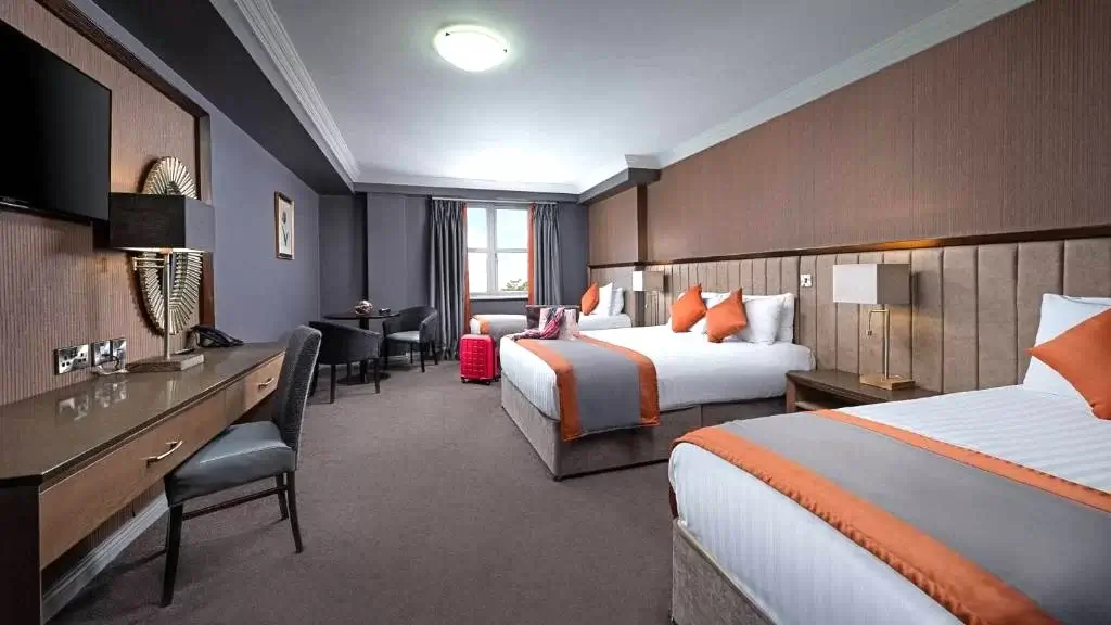 We realise that families with young kids and older ones too need plenty of space and comfort and our family rooms are designed with this in mind. We offer a range of layout options to suit you and your family and can accommodate up to five guests at our hotel in Laois. Room layouts include 1 double & 1 single bed (with the option of camp bed), 1 double bed and one fold-away double sofa bed can sleep up to 2 adults and 3 children perfectly and 1 double bed, a single bed and a sofa bed/camp bed OR a double bed and 2 single beds.