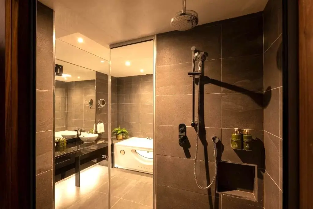 Individually designed luxury rooms featuring a King bed, electronic safe, a mini refrigerator, a flat-screen TV, individually-controlled air conditioning, complimentary mineral water and high-speed WiFi. The en-suite comes with a walk-in shower and a bathtub and the toilet is separate. Bathrobes and slippers are provided.