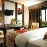 The unit offers 1 king size bed. Bunk Bed available in the Family Suites.