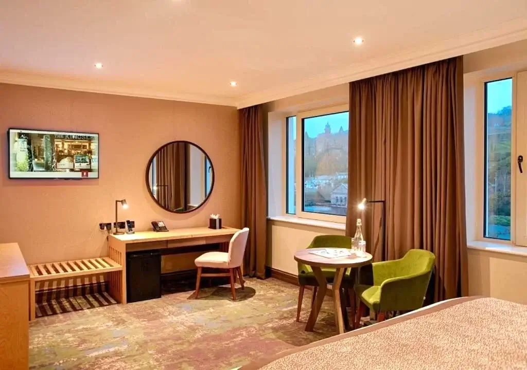 The Kingsley is a luxury four-star urban retreat in Cork, offering stunning riverside views and a serene walk by the River Lee. Just a few minutes’ walk from Cork City centre, this hotel features vibey dining options, a world-class spa, and a health club, making it perfect for business travelers or those looking to explore the surrounding area.