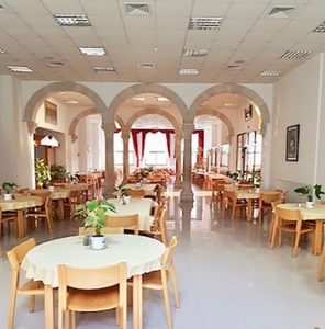 There are two residences with excellent facilities that can accommodate groups of pilgrims. Individual accommodation can also be arranged when space is available. In the new residence, there is also a library, meeting room and comfortable lounge by the reception area.
