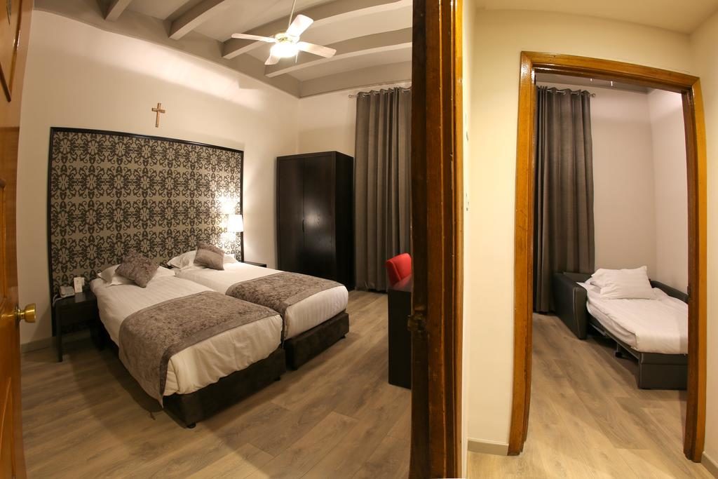 The Notre Dame of Jerusalem Center, is owned by the Vatican, and is an ideal place to stay for any Catholic. It has a quiet, beautiful, prayerful chapel, with Jesus present in the tabernacle and with an active sacramental life (daily Adoration, Mass, and Confession). The staff is very helpful, attentive, and friendly! Great location, just opposite the New Gate of the Old City of Jerusalem, the City Hall, short walk away from the most important holy sites, with a short walk from the Holy Sepulcher, as well as the attractions, shops and restaurants of the new city. Notre Dame rooms are small but comfortable with modern bathroom facilities. There are three restaurants, a buffet, a cafeteria, and its famous rooftop restaurant offering breathtaking views and delicious dishes for lunch and dinner.