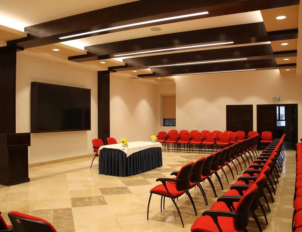 The Logos meeting room is located on the 2nd floor of the main building, it can seat up tp 100 people. It is fully equipped with simultaneous translation balconies, a built in LCD projector, smart board, sound systems, screen, satellite connection and video conferencing equipment.