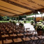 In case of need and for large numbers of guests it can be mounted a marquee that covers a portion of the court and the turf.
