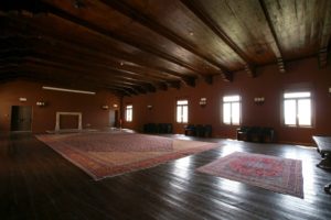 The floor still has the original wooden beams of the time, and a large fireplace adorns one of the walls.